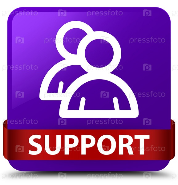 Поддержка (икона группы) фиолетовая квадратная кнопка красная лента посередине