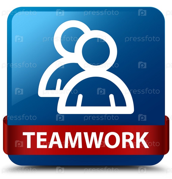 Командная работа (икона группы) синяя квадратная кнопка красная лента посередине