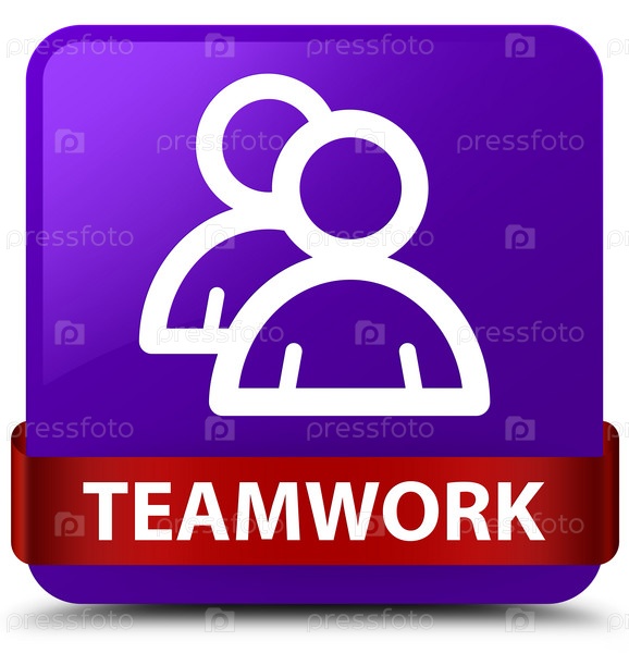 Командная работа (икона группы) фиолетовая квадратная кнопка красная лента посередине