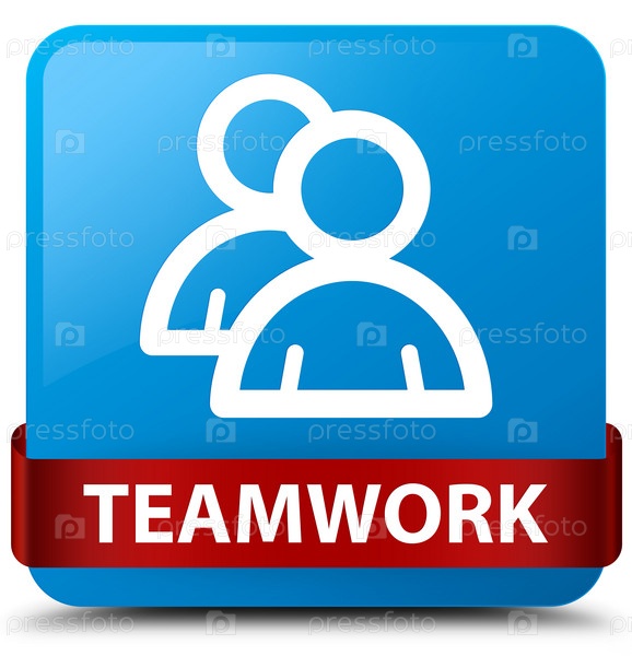 Командная работа (икона группы) синий синий квадратный кнопка красная лента посередине