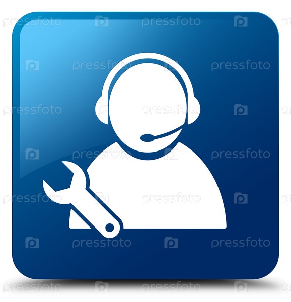 Икона технической поддержки синяя квадратная кнопка