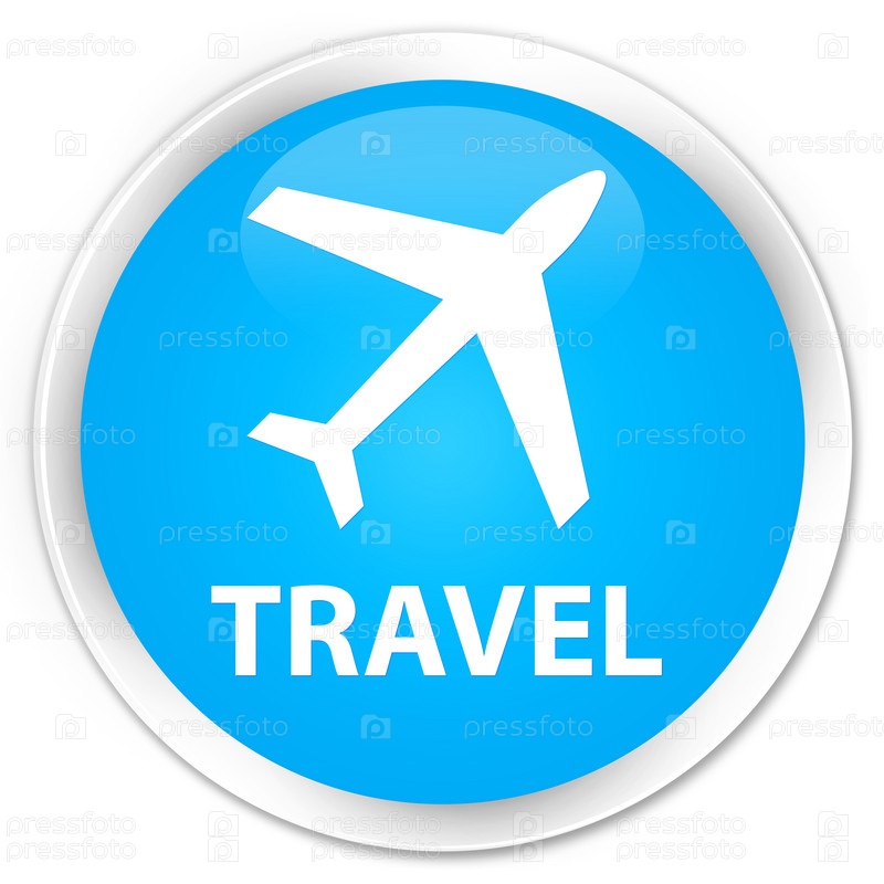 Путешествие (икона самолета) премиум-циановый синий круглый кнопка