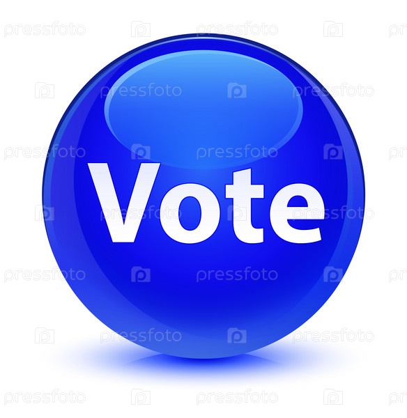 Голосуйте стеклянной синей круглой кнопкой