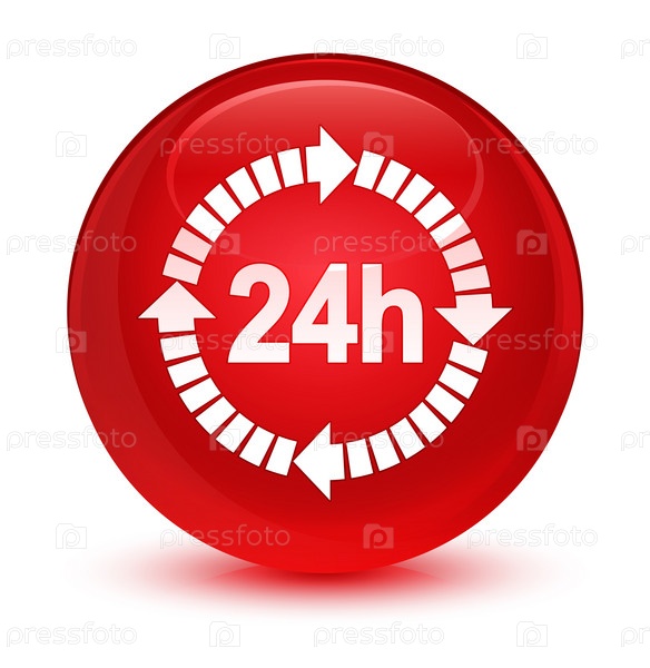 Икона доставки в течение 24 часов стеклянная красная круглая кнопка
