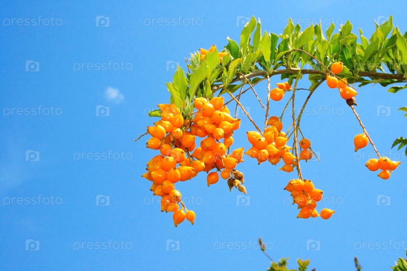 Тропические оранжевые цветы на фоне неба