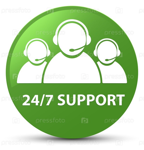 Поддержка 24/7 (икона команды по уходу за клиентами) мягкая зеленая круглая кнопка