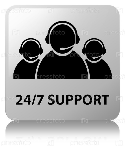 Поддержка 24/7 (икона команды по уходу за клиентами) белая квадратная кнопка