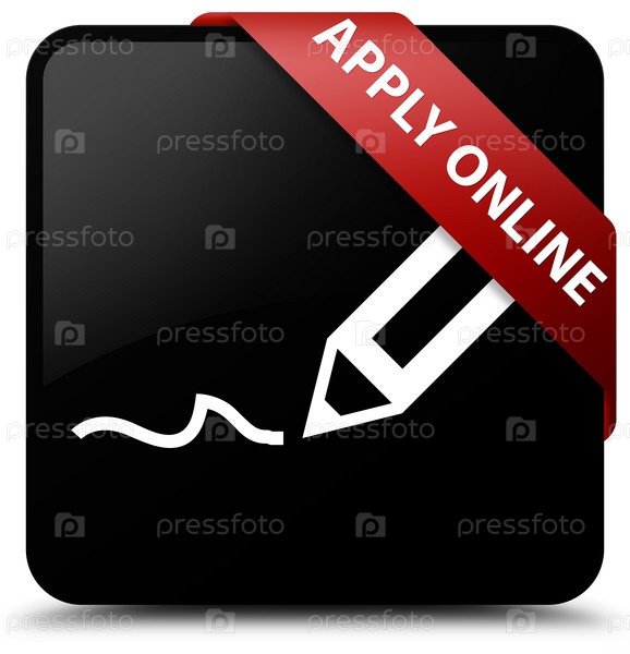 Apply online (edit pen icon) черная квадратная кнопка красная лента в углу