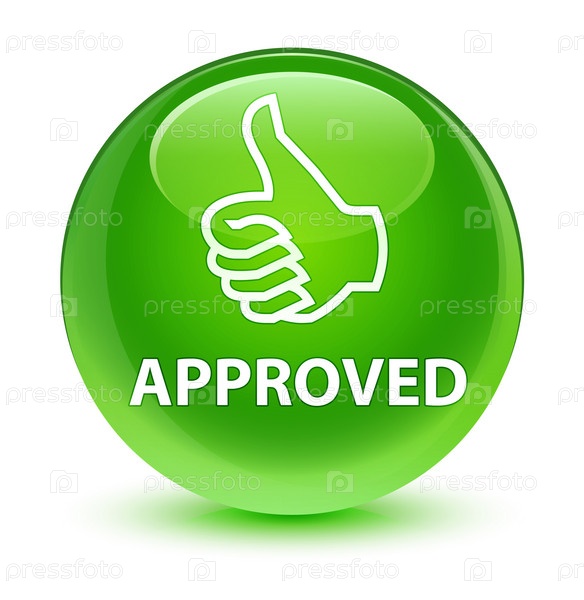 Утверждено (икона пальцев вверх) стеклянно-зеленая круглая кнопка