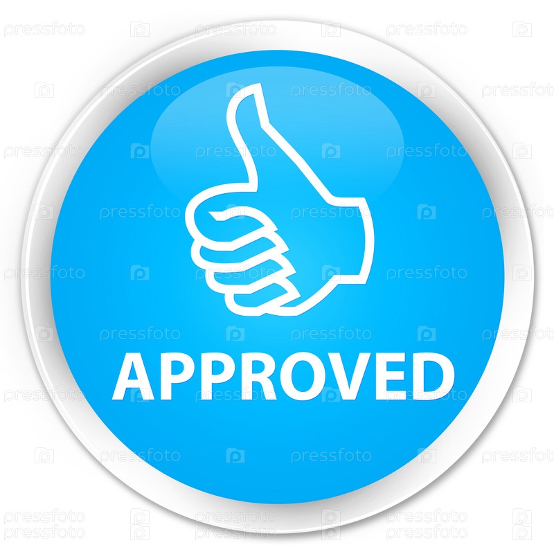 Утверждена (икона пальцев вверх) круглая кнопка premium cyan blue