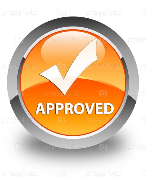 Approved (validate icon) блестящая оранжевая круглая кнопка