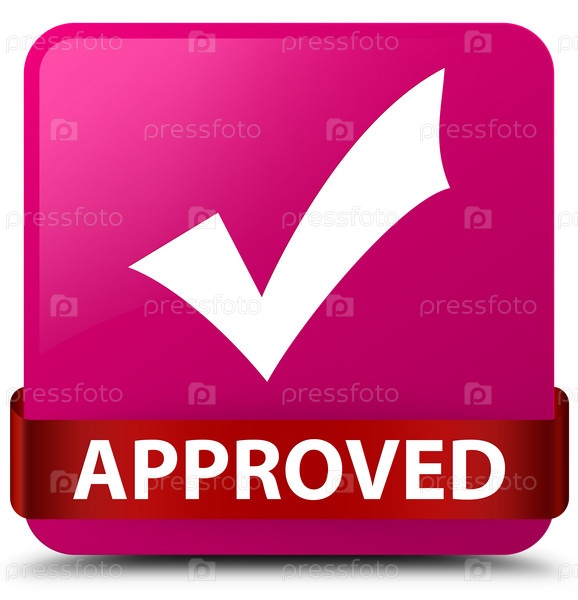 Approved (validate icon) розовая квадратная кнопка красная лента посередине