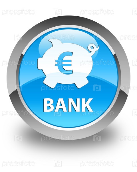 Банк (piggy box euro sign) блестящая сине-циановая круглая кнопка