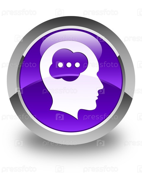Икона головы мозга блестящая фиолетовая круглая кнопка