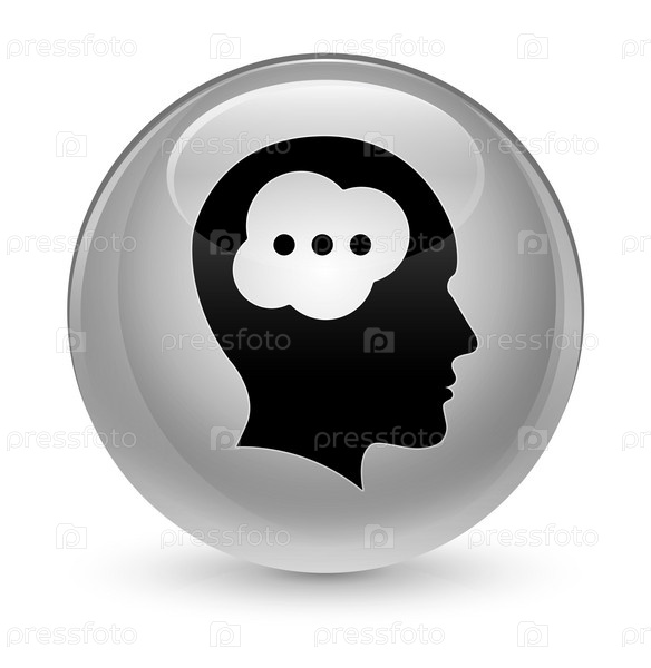 Икона головы мозга стеклянная белая круглая кнопка