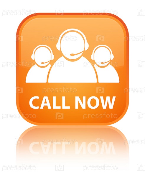 Позвоните сейчас (икона команды по уходу за клиентами) специальная оранжевая квадратная кнопка
