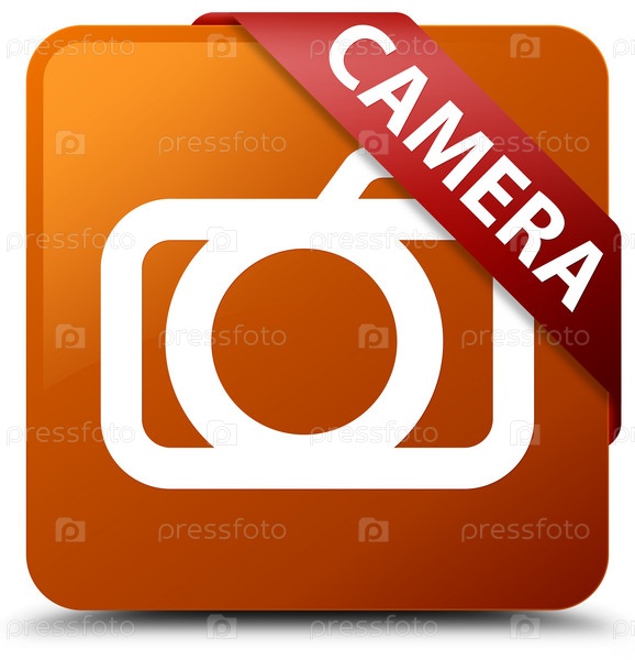 Камера коричневая квадратная кнопка красная лента в углу