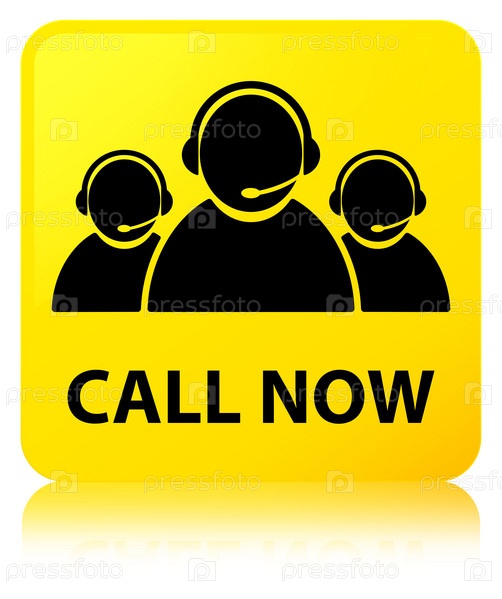 Позвоните сейчас (икона команды по обслуживанию клиентов) жёлтая квадратная кнопка