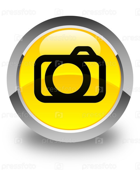 Икона камеры блестящая желтая круглая кнопка
