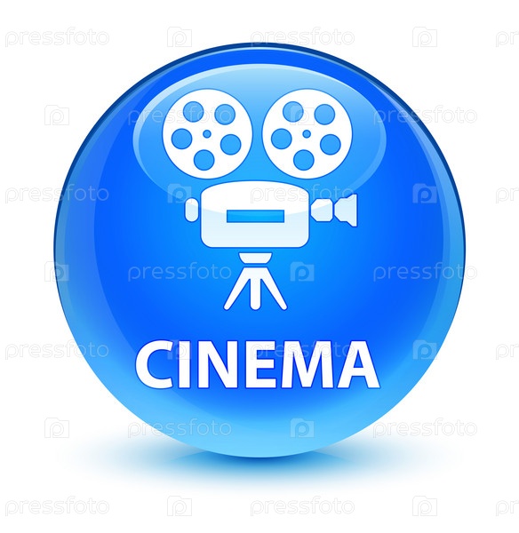 Кинотеатр (икона видеокамеры) стеклянная синяя синевая круглая кнопка