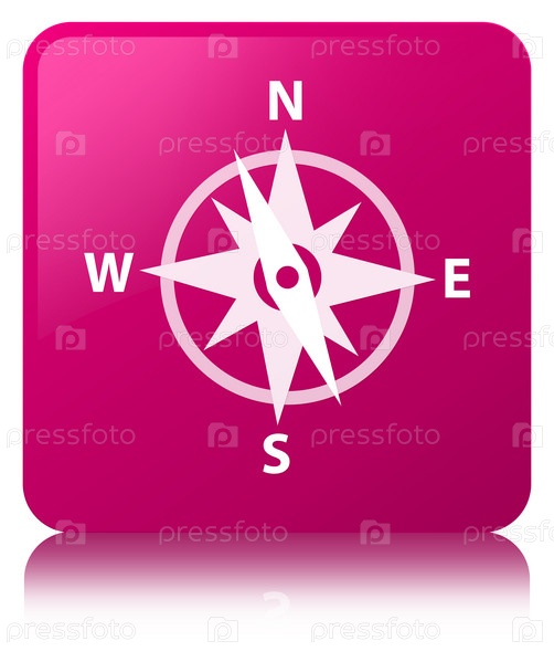 Икона компаса розовая квадратная кнопка
