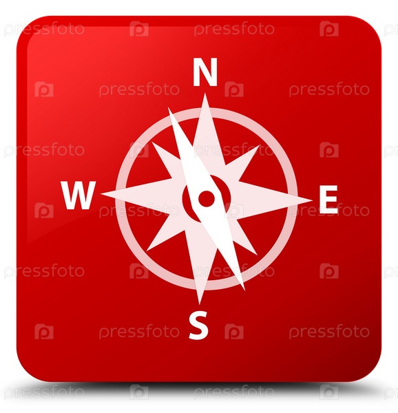 Икона компаса красная квадратная кнопка