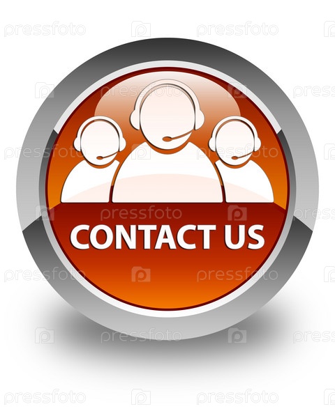 Свяжитесь с нами (икона команды по уходу за клиентами) глянцевая коричневая круглая кнопка