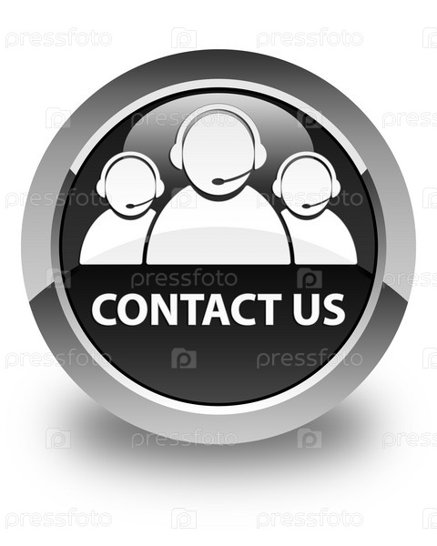 Свяжитесь с нами (икона команды по обслуживанию клиентов) глянцевая черная круглая кнопка