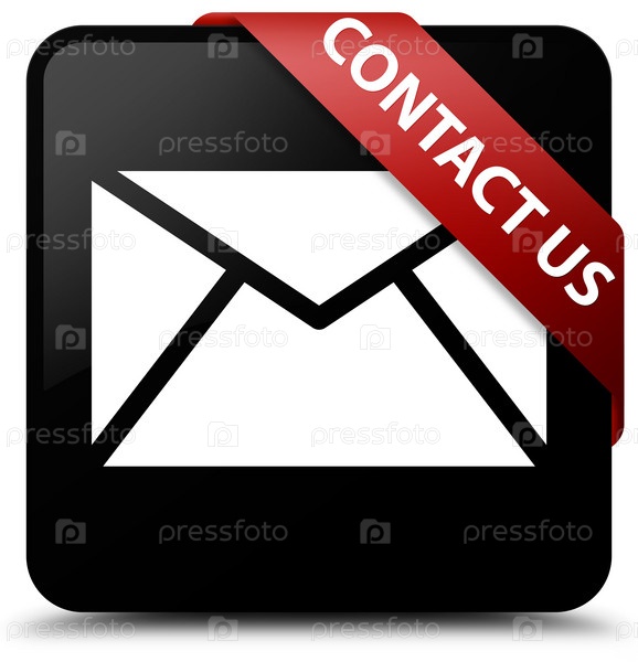 Связаться с нами (икона электронной почты) черная квадратная кнопка красная лента в углу
