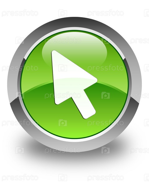 Икона курсора глянцевая зеленая круглая кнопка
