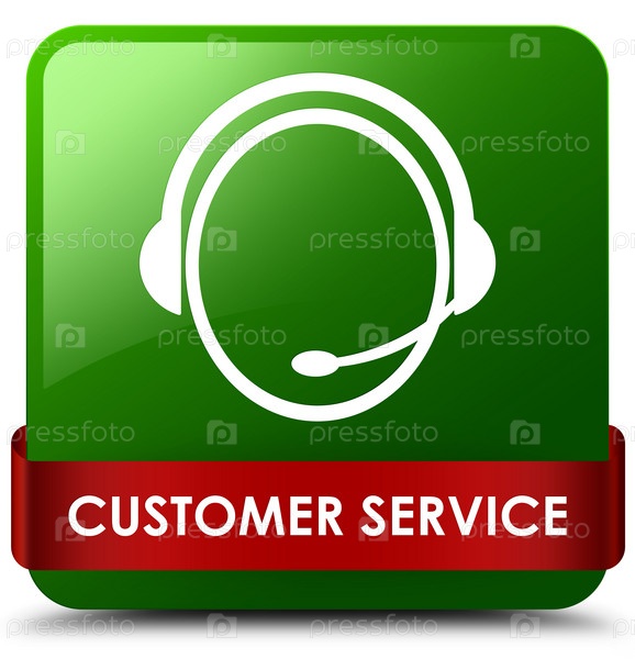 Служба поддержки клиентов (икона обслуживания клиента) зеленая квадратная кнопка красная лента посередине
