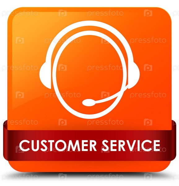 Служба поддержки клиентов (икона обслуживания клиента) оранжевая квадратная кнопка красная лента посередине