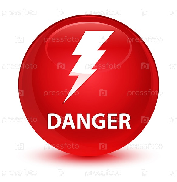 Опасность (икона электричества) стеклянная красная круглая кнопка