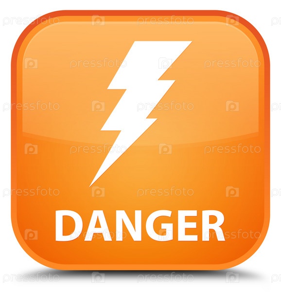 Опасность (икона электричества) специальная оранжевая квадратная кнопка