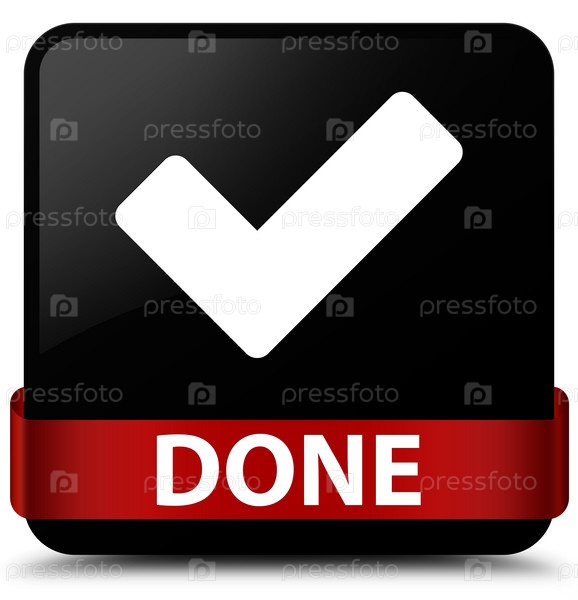 (подтвердить иконку) черный квадратный кнопка красная лента посередине Сделано