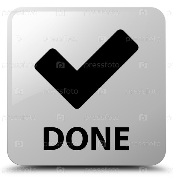 Сделано (икона проверки) белая квадратная кнопка