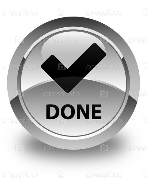 Сделано (икона проверки) блестящая белая круглая кнопка