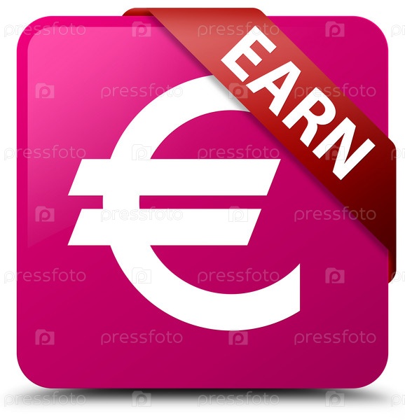 Заработать (знак евро) розовая квадратная кнопка красная лента в углу