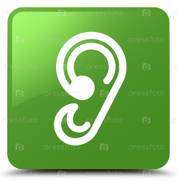Икона уха мягкая зеленая квадратная кнопка