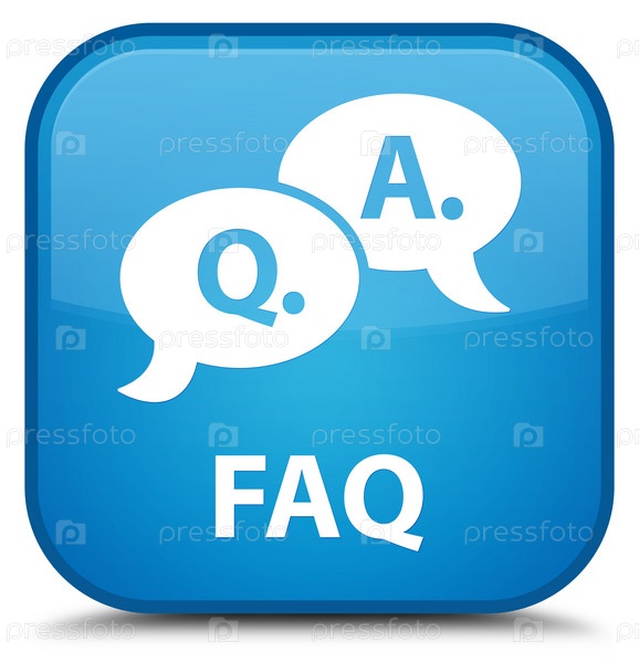 Часто задаваемые вопросы (икона пузырьков вопросов и ответов) специальная квадратная кнопка синего цвета