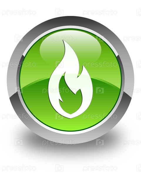 Икона огненного пламени глянцевая зеленая круглая кнопка