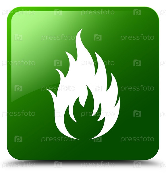 Икона огня зеленая квадратная кнопка