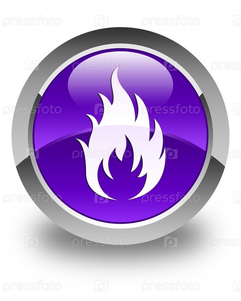 Икона огня глянцевая фиолетовая круглая кнопка
