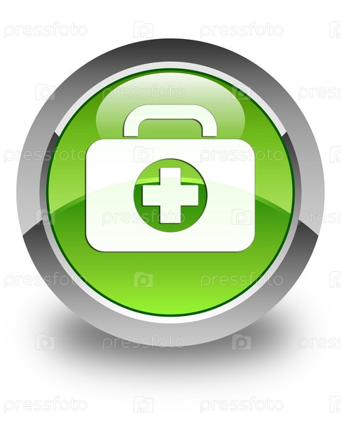 Икона пакета первой помощи глянцевая зеленая круглая кнопка