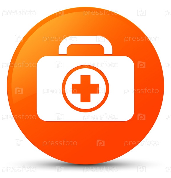 Икона аптечки первой помощи оранжевая круглая кнопка