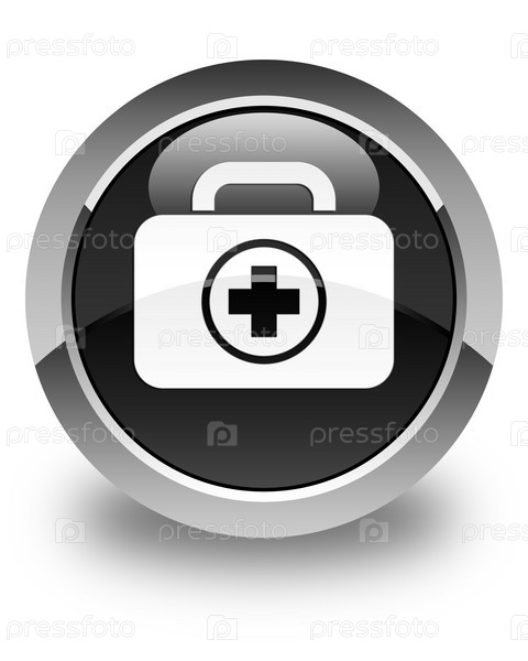 Икона аптечки первой помощи глянцевая черная круглая кнопка