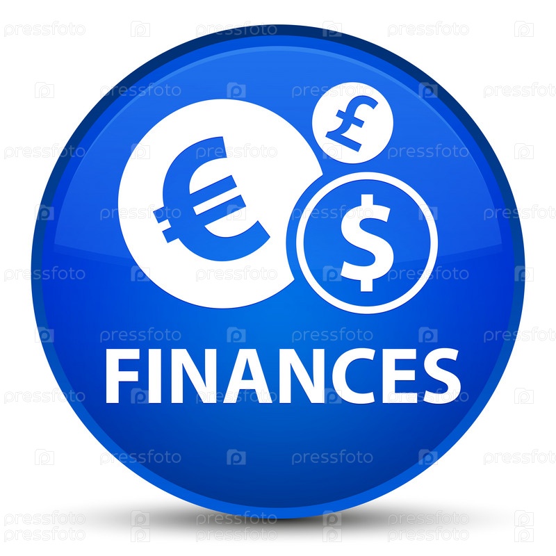 Финансы (знак евро) специальная голубая круглая кнопка