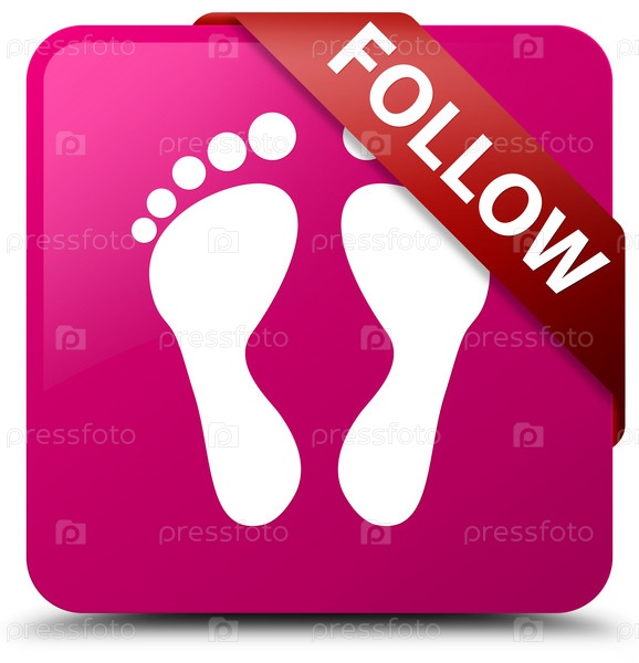 Следуйте (икона отпечатков) розовая квадратная кнопка красная лента в углу