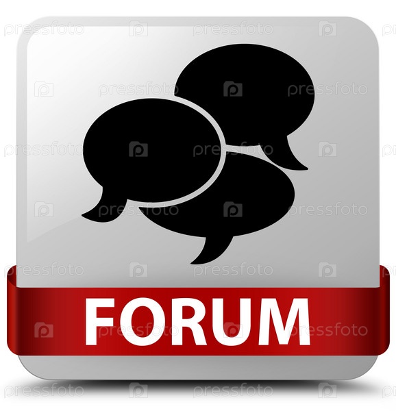 Форум (комментарии икона) белая квадратная кнопка красная лента посередине