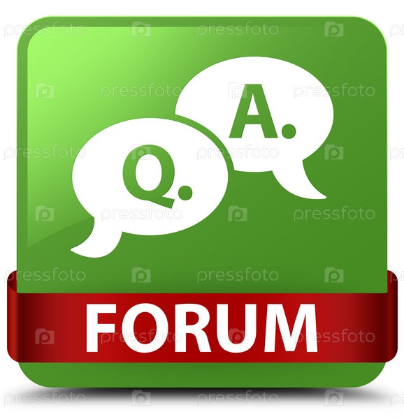 Форум (икона пузыря ответа на вопрос) мягкая зеленая квадратная кнопка красная лента посередине